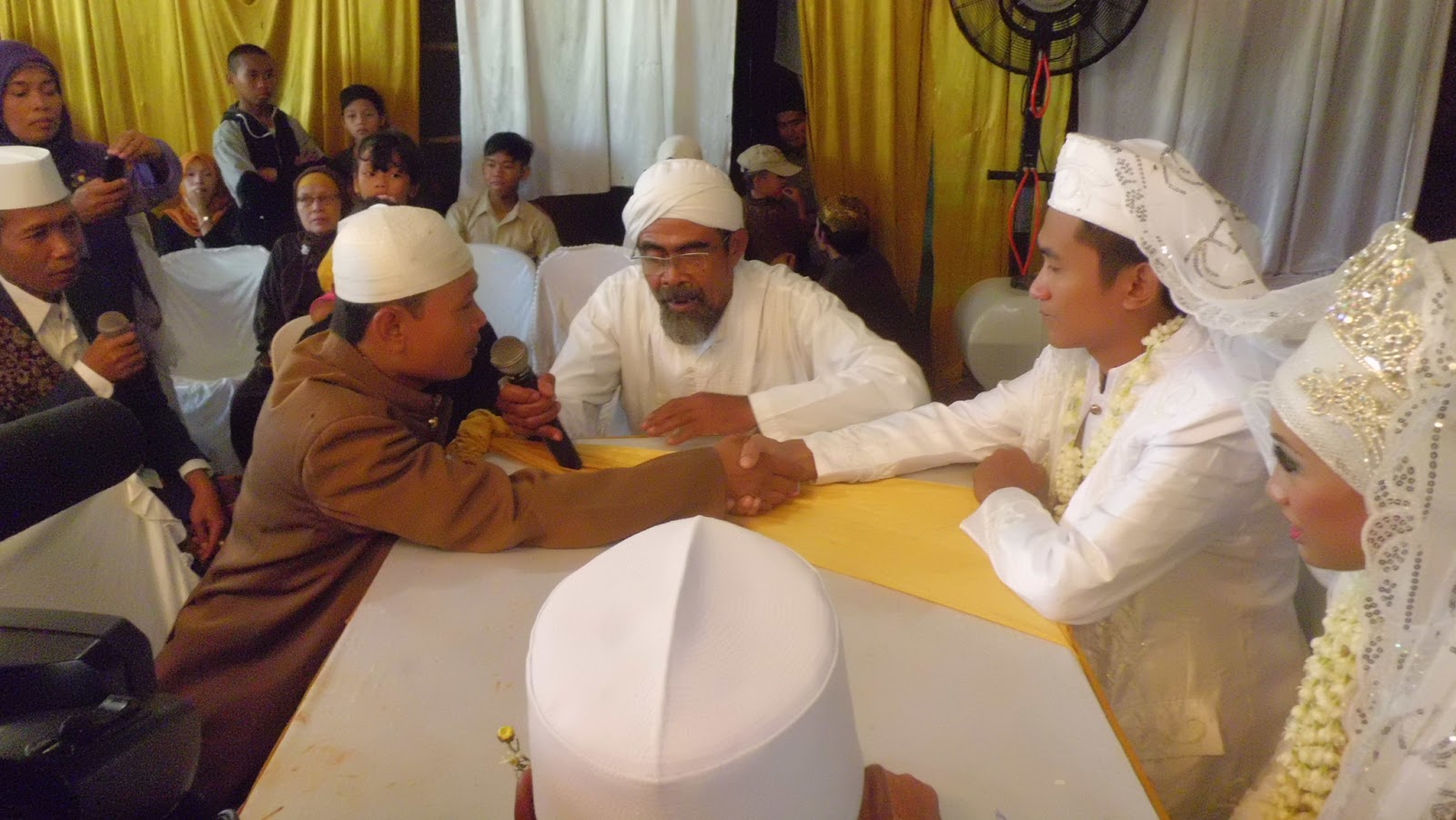 Entah karena ingin tampil beda atau alasan yang lain, qobul yang ia ucapkan tidak seperti yang lazim diucapkan kebanyakan orang, yakni dengan embel-embel “dengan memohon ridho Allah, bismilaahirrohmaanirrohiim, saya terima nikahnya……”. Sehingga hal tersebut memantik rasa penasaran kami akan keabsahan akad nikah yang dilakukan Kang Sam.
